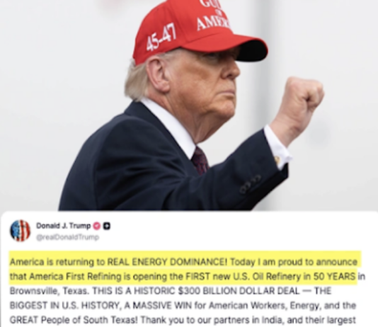 El presidente Trump anuncia la construcción de una refinería de petróleo multimillonaria en el...
