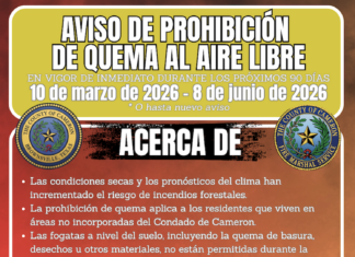 El 10 de marzo de 2026, el Tribunal de Comisionados del Condado de Cameron emitió oficialmente una Prohibición de Quema al Aire Libre...