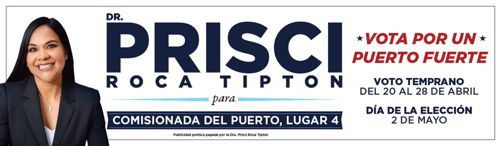 Gran apoyo esta recibiendo Prisci Roca Tipton en su candidatura para comisionada por el Lugar No. 4 en la mesa directiva de el Puerto...
