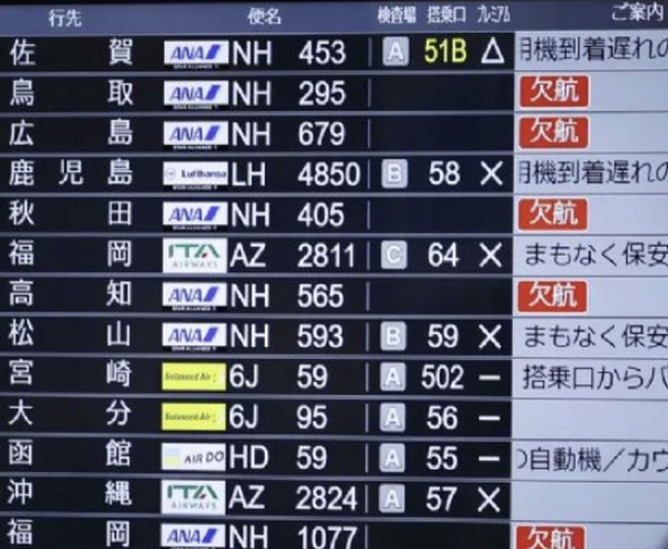 En Japón, All Nippon Airways, que opera más de 30 aviones, canceló 65 vuelos nacionales para el sábado. Dijo que eran posibles cancelaciones adicionales el domingo.
