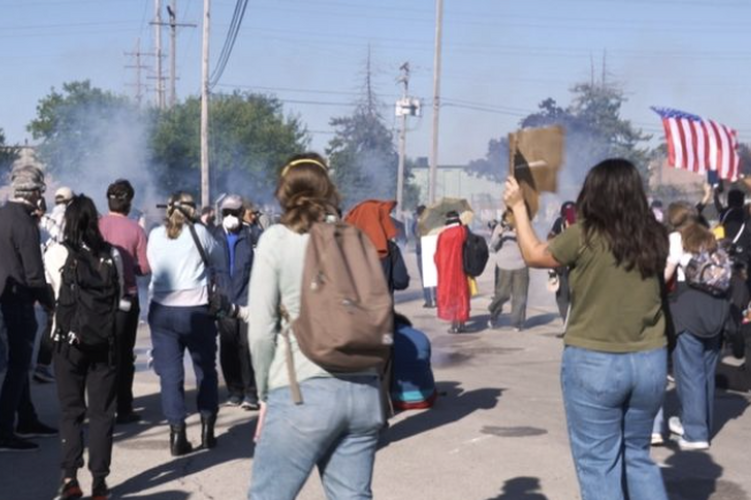 Agentes federales dispararon balas de pimienta y gases lacrimógenos contra manifestantes cerca de un edificio de control de inmigración en un suburbio de Chicago el viernes.