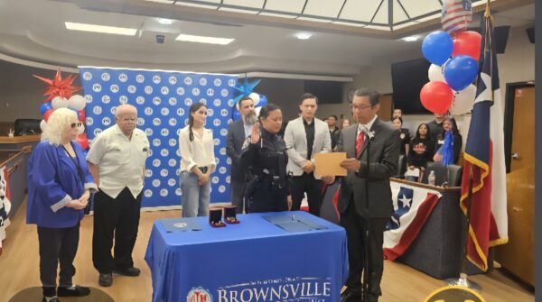 Con largas ovaciones de bienvenida el público asistente, dio la bienvenida a Anna Gaucin, quien este jueves tomo su juramento como la nueva Jefe del Departamento de policía del Distrito Escolar Independiente de Brownsville, (BISD, por sus siglas en inglés).