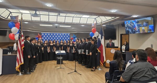 Este evento estuvo amenizado con el coro de la escuela preparatoria Porter, que interpretó “American Anthem” y “I Hear America Singing”.