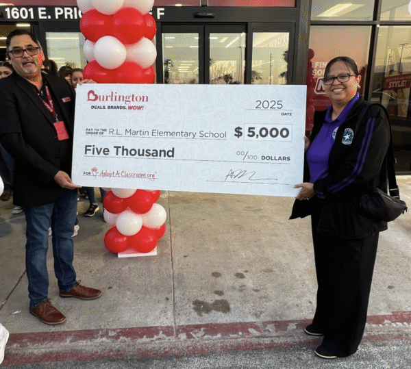 Un chwque de 5 mil dólares recibió la escuela primaria Martin del Distrito Escolar Independiente de Brownsville, (BISD, por sus siglas en inglés), durante la inauguración de reconocida cadena comercial en la mañana de este sábado.