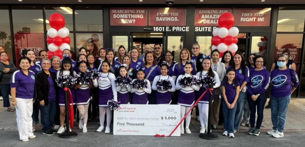 Tanto estudiantes y familias de la Escuela Primaria Martin, como representantes de Burlington, se dieron cita en el nuevo local de este comercio para la entrega simbólica de los fondos a la escuela primaria Martin.
