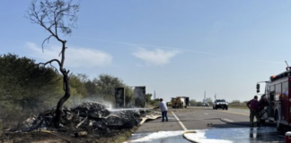 Conductor muere en accidente de camión con remolque en llamas al este de Edinburg.