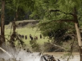 La búsqueda de víctimas de las inundaciones se ve frenada por montañas de escombros mientras miles de personas llegan al condado de Kerr para...