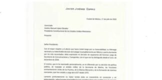 Carta íntegra de la renuncia de Jiménez Espriú de la SCT