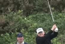 La reunión se produjo después de que Trump jugara al golf por segundo día consecutivo en Turnberry, esta vez con un grupo que incluía a sus hijos Eric y Donald Jr. Además de negociar acuerdos, la visita de cinco días de Trump a Escocia se centra en el golf y la promoción de propiedades que llevan su nombre.
