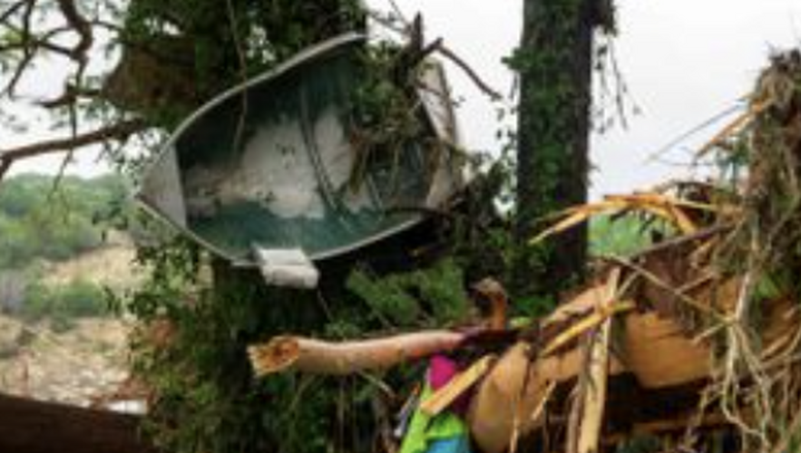Alrededor de 10 pulgadas de lluvia cayeron en pocas horas, causando inundaciones a lo largo del río Guadalupe, que subió 26 pies en 45 minutos.