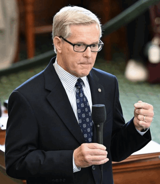 El senador Phil King, republicano de Weatherford, presidente del Comité de Redistribución de Distritos del Senado, defiende la HB 4 durante el debate sobre el proyecto de ley de redistribución de distritos de mediados de década en el Senado de Texas el 22 de agosto de 2025.