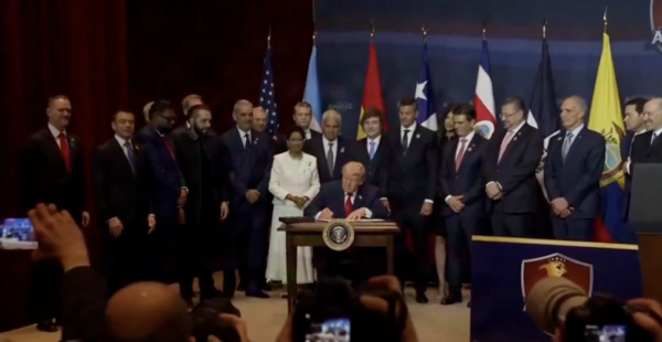 El presidente Donald Trump anunció este sábado durante la cumbre “Escudo de las Américas”  la creación de una coalición militar conformada por al menos 17 países latinoamericanos para combatir a los cárteles de las drogas en la región, en la cual Estados Unidos se compromete a entrenar y movilizar a los ejércitos de las otras naciones para cumplir dicho objetivo.