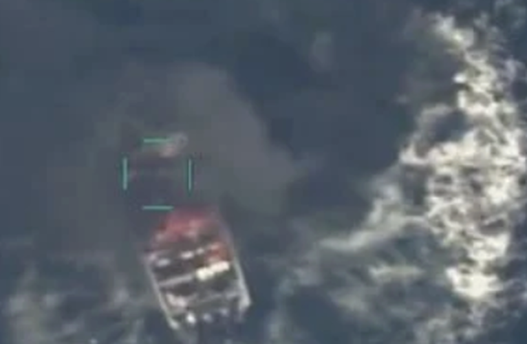 Las Fuerzas Armadas estadounidenses acompañaron la publicación del ataque con un video donde se observa a un buque en movimiento que resulta impactado.