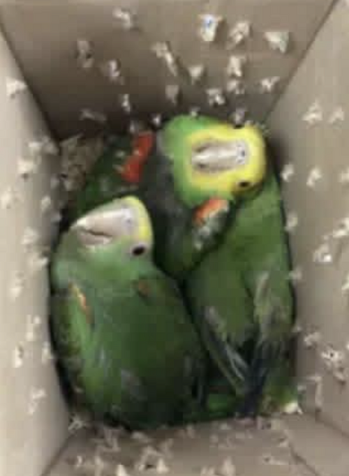 Los oficiales de la Oficina de Operaciones de Campo de CBP interceptaron recientemente tres loros de contrabando en el puerto de entrada de Brownsville.