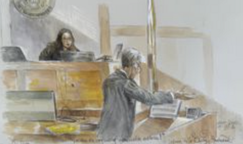De vuelta en la sala, Routh compareció ante el juez, sin llevar chaqueta ni corbata. Durante el juicio, Routh, quien se representaba a sí mismo, no llevaba grilletes. Pero cuando compareció ante el juez tras el intento de apuñalamiento, sí los llevaba.