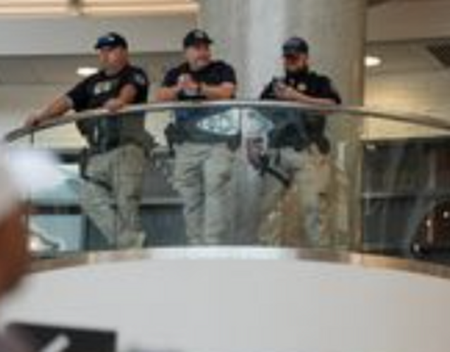 Los agentes federales de la ley están presentes habitualmente en los aeropuertos internacionales. Los agentes de Aduanas y Protección Fronteriza inspeccionan a los pasajeros que llegan, y los agentes de Investigaciones de Seguridad Nacional realizan investigaciones criminales relacionadas con actividades transfronterizas. Sin embargo, los agentes de inmigración rara vez son visibles en los controles de la TSA, la primera línea de defensa de los viajes aéreos nacionales.