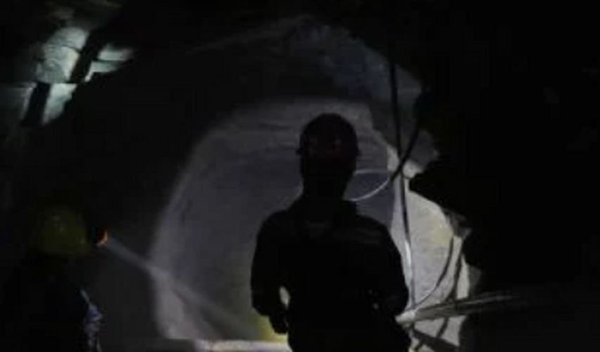 Un taladro resulta a través de estrechos túneles en lo profundo de la montaña, donde el minero Hugo Flores perfora la roca en busca de uno de los elementos más tóxicos de la Tierra.